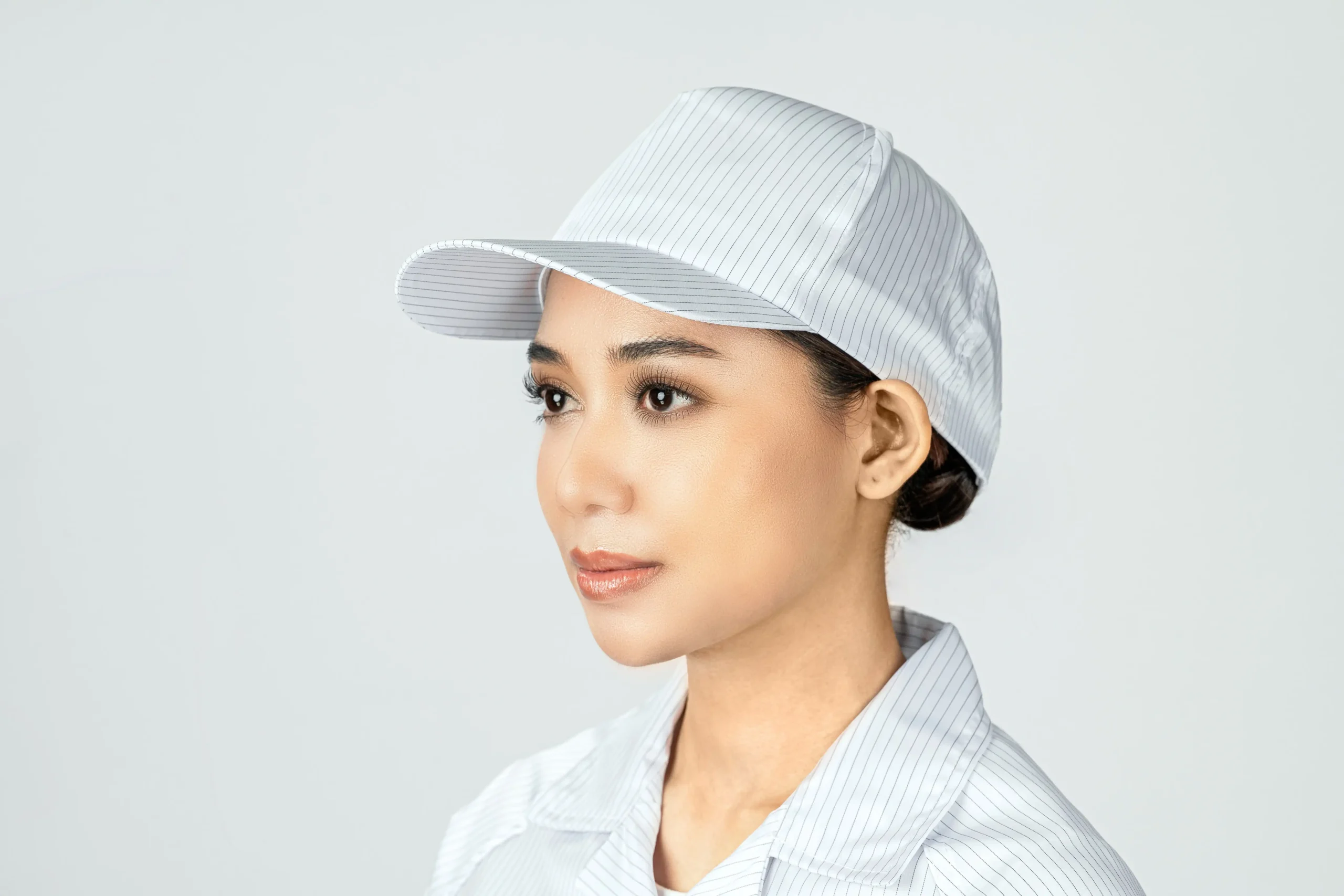 This cap features a clean, single-color design with a curved brim and structured fi t. The conductive grid lines in the fabric help manage static buildup, while the adjustable strap at the back allows for a comfortable fi t on most head sizes. Simple, clean, and effective.