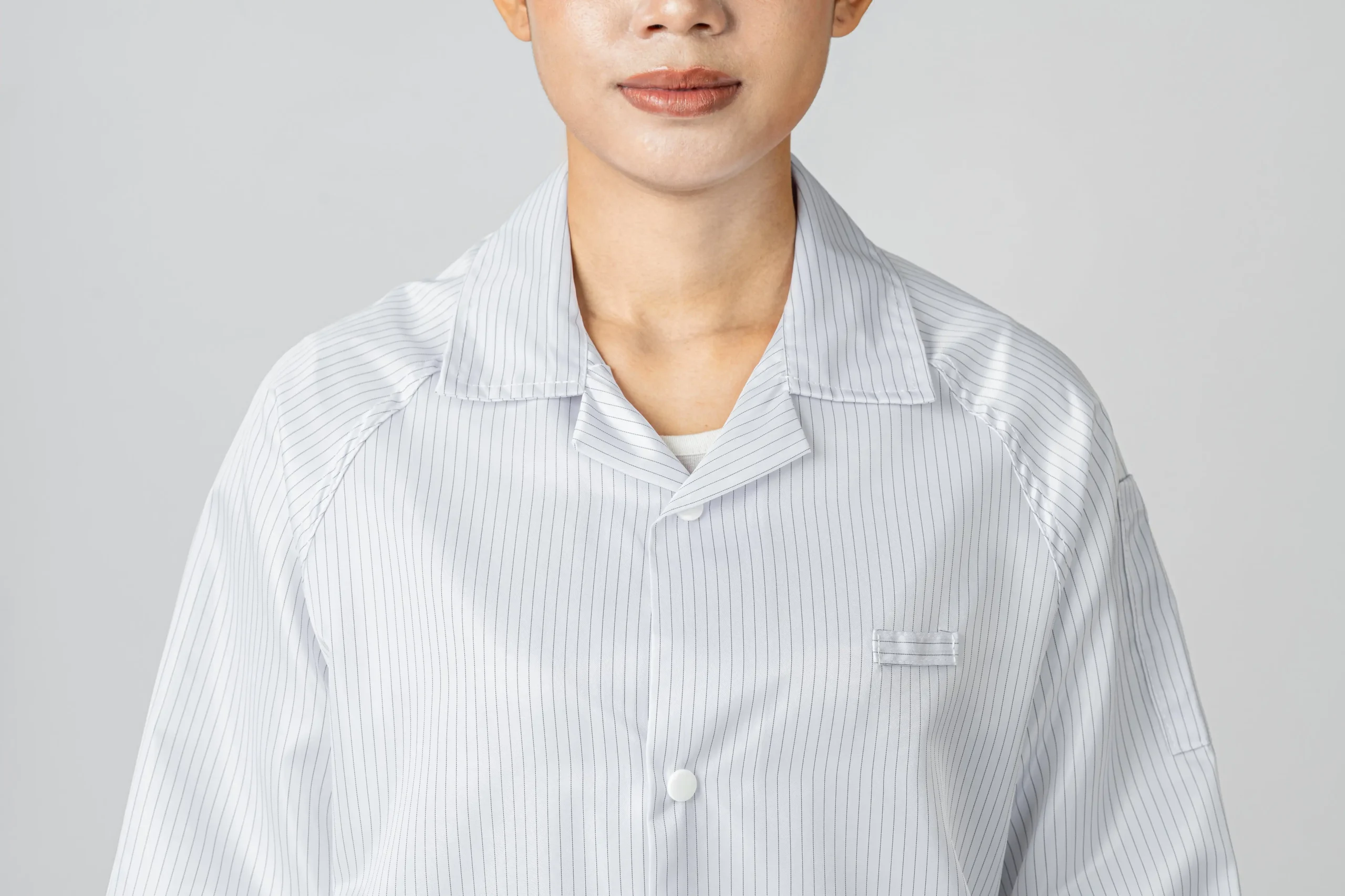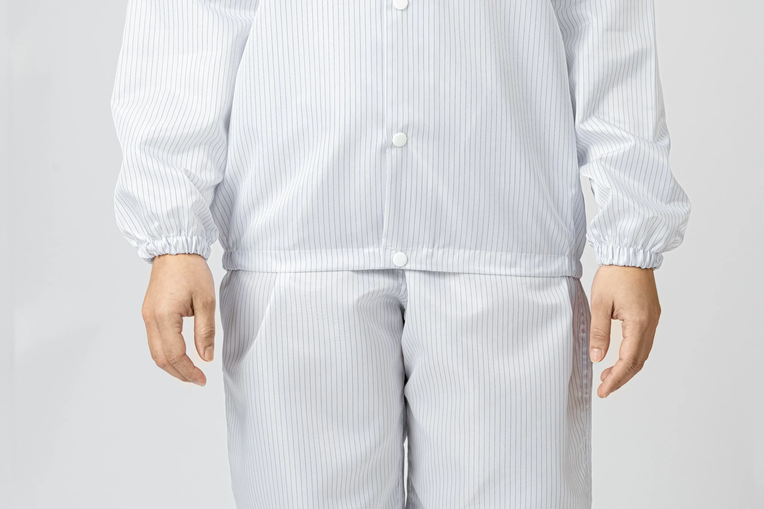 Made from 99% polyester and 1% conductive carbon, this ESD Jacket delivers excellent static control, chemical resistance, and durability. Designed for Class 10 (ISO 4) cleanrooms and above, it’s ideal for microelectronics, semiconductors, and related industries. It’s compatible with gamma sterilization and can be safely autoclaved without losing its protective qualities. The jacket features a system resistance between 10e6~10e9 Ω with a rapid static decay time under 0.1 seconds, meeting strict ESD standards.